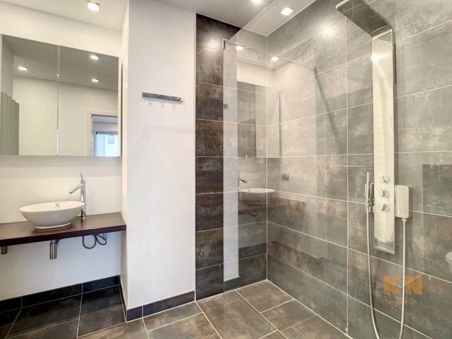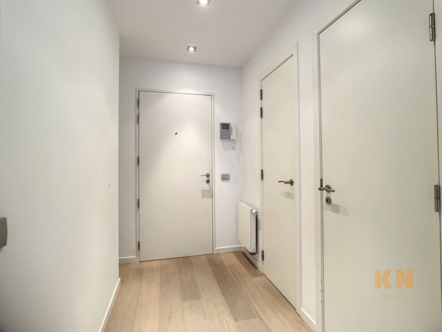 Superbe appartement au calme de +/- 65 m² situé en intérieur d'îlot dans un clos entre le Boulevard du Souverain et le Parc de la Woluwe. Il dessert un hall d'entrée avec vestiaire, bel espace séjour, cuisine super équipée semi-ouverte, accès à la terrasse. Le hall de nuit dessert une chambre à coucher, une salle de douche, accès terrasse. L'appartement dispose d'une buanderie, une cave (avec prise électrique), un emplacement de parking obligatoire à 100 euros/mois en suppl., local vélo, local poubelle. Coup de cur assuré! Info et contact www.knproperties.be
