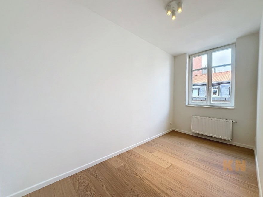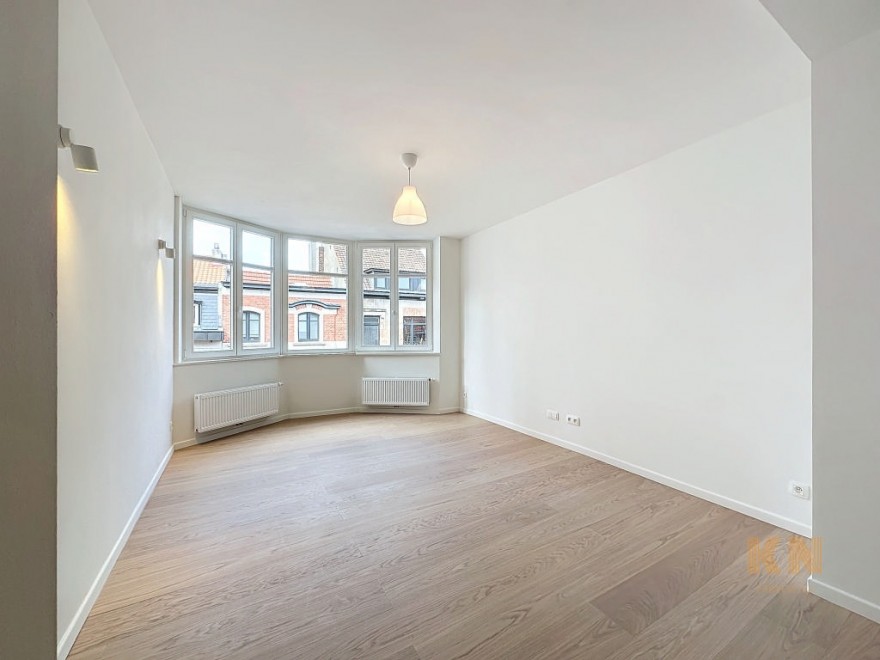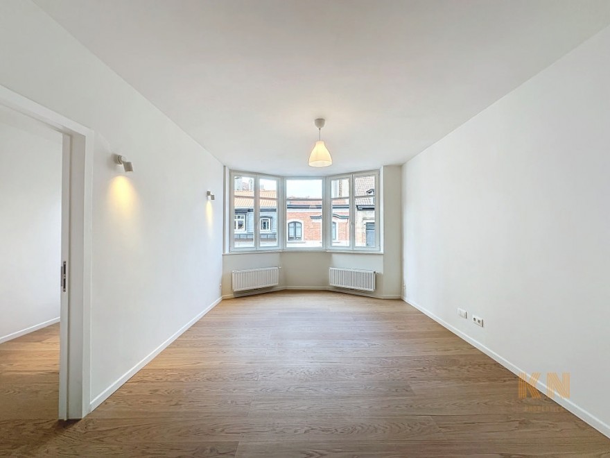 Superbe appartement, rénovation complète de l'immeuble 2024, il est situé au 2ème étage sur 2 et offre une surface habitable de +/- 70 m². Il dessert un bel espace séjour, un espace bureau ou seconde chambre de +/- 8 m², une cuisine super équipée. Le hall de nuit dessert une chambre à coucher de +/- 13.5 m² et une salle de bains. PEB G (avant rénovation, en attente nouveau PEB). Coup de coeur assuré !! info et contact www.knproperties.be - 0032 485 876 577