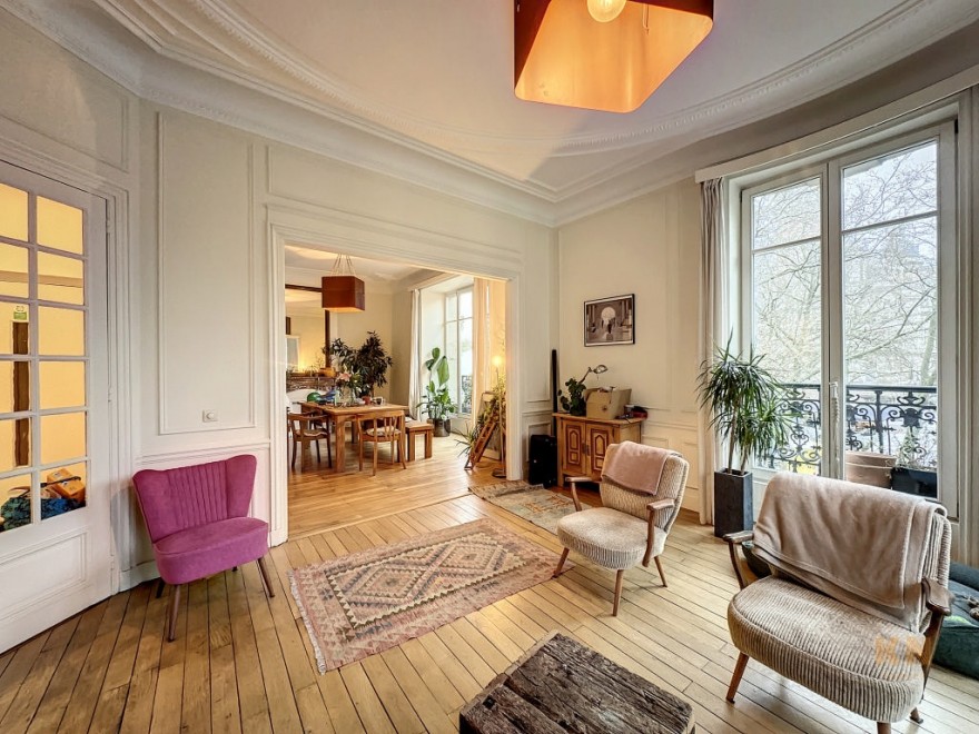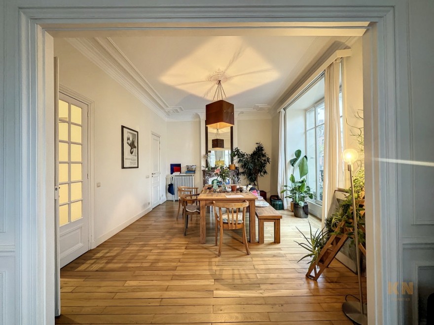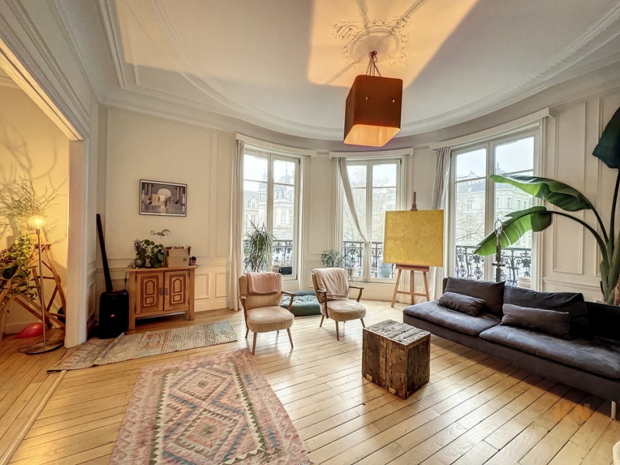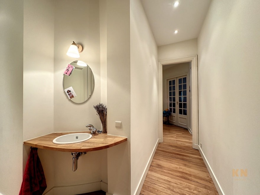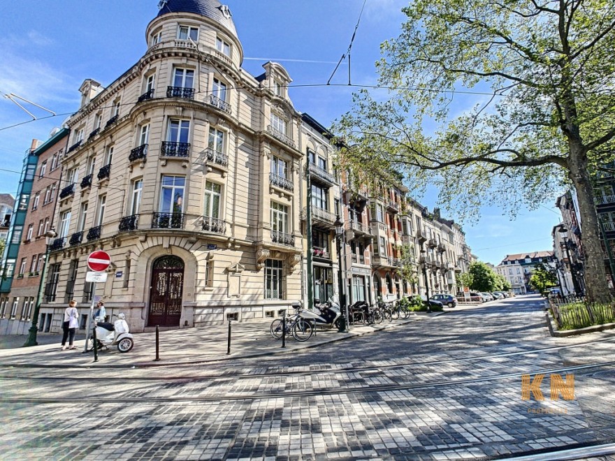 Superbe appartement de +/- 140 m² situé dans un magnifique immeuble style Beaux-Arts de 1903 en face de la place communale de Saint-Gilles et à deux pas de la chaussée de Waterloo / ch. de Charleroi / Chatelain / Louise. Il dessert un hall d'entrée, bel espace séjour de +/- 50 m², une cuisine super équipée avec un coin à déjeuner, espace buanderie. Le hall de nuit dessert 2 chambres à coucher de +/- (20 et 22 m²) dont une avec salle de bain (bain et douche) attenante, une salle de douche. L'appartement offre des plafonds à 3m20, moulures, plancher, superbe cachet ! Coup de cur assuré - www.knproperties.be - +32 485 876 577