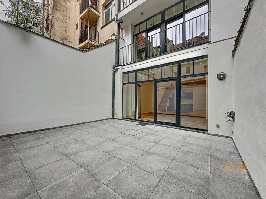 Magnifique duplex d'une première occupation après rénovation totale de l'immeuble et offrant une surface habitable de +/- 125 m² , +/- 30 m² de terrasse/cour le tout situé entre la maison communale de Saint Gilles et le parc. Il dessert un bel espace séjour avec cuisine super équipée et son îlot central, un accès à la terrasse. Le hall de nuit dessert 3 chambres à coucher avec chacune sa salle de douche. L'appartement dispose d'un espace buanderie, une cave, système double flux. PEB C (en attente réception architecte). Coup de cur assuré ! Info et contact - www.knproperties.be - 0032 485 876 577