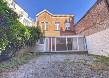 Belle maison à rénover située à 300m de la Pl. Dumon et offrant une surface habitable brut de +/- 160 m² + 20 m² d'atelier. La maison est desservie comme suit : beau hall d'entrée, bel espace séjour (salon, salle à manger), une cuisine équipée ( avec du gaz). Le hall de nuit dessert 3 chambres à coucher de +/- ( 13 m² / 17 m² / 10 m²) + grenier aménaegable de +/- 30 m², une salle de bains. La maison dispose d'un jardin de +/- 120 m² plein sud, une terasse, un atelier, volets, double vitrage, cave. (possibilité de passer le chauffage au gaz). PED D, info et contact www.kn properties.be - 0032 485 876 577